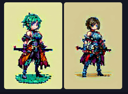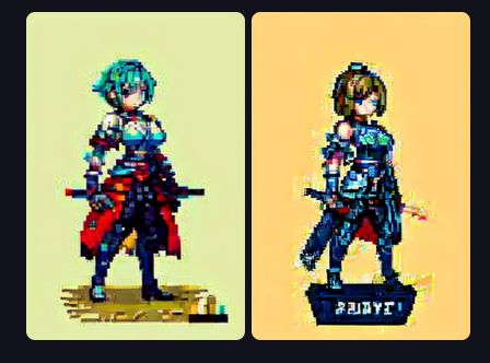 調整不足で画像が崩れ気味ですが、トリガーワード無しでもしっかりpixelになっていますね。