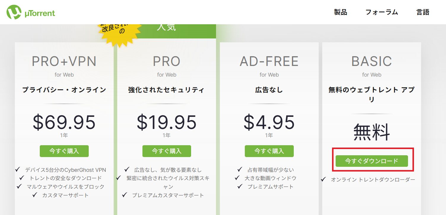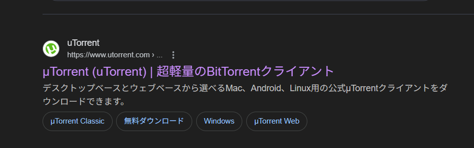 「μTorrent」のサイトから、トレントをダウンロードします。
