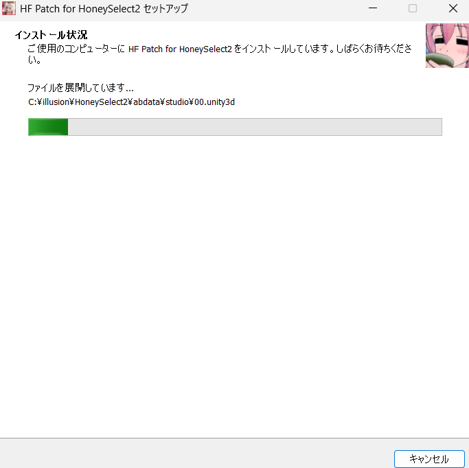 ここから「HFパッチのダウンロード」が始まるのですが、非常に時間がかかるのでしばらく待ちましょう。
