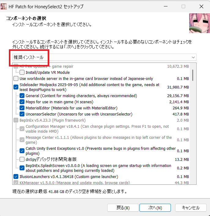 が、基本的には「推奨インストール」をすれば、必要なMODはほぼすべて入手できます。