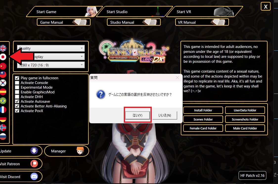 【ハニーセレクト2 リビドーDX】HFパッチの導入方法